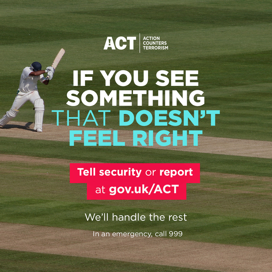 | Cricket image Encouraging cricket fans to stay alert and tell security if they see anything that doesn’t feel right. Portrait images can be used for Instagram stories and reels. Square images can be used for Instagram, Twitter and Facebook posts. | |