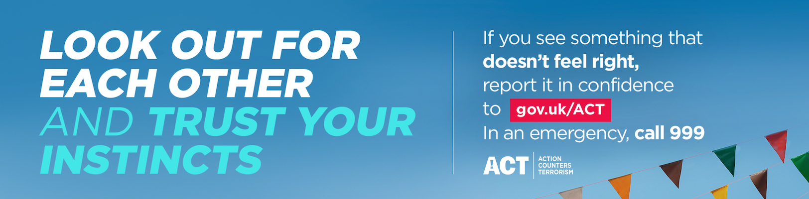 Have a great time and look out for each other. If you see something that doesn’t feel right, trust your instincts and tell security or report online at gov.uk/ACT.